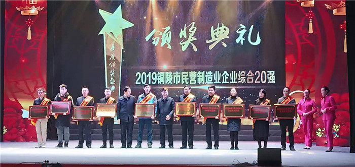 天海流體榮獲2019銅陵市民營制造業(yè)企業(yè)綜合20強